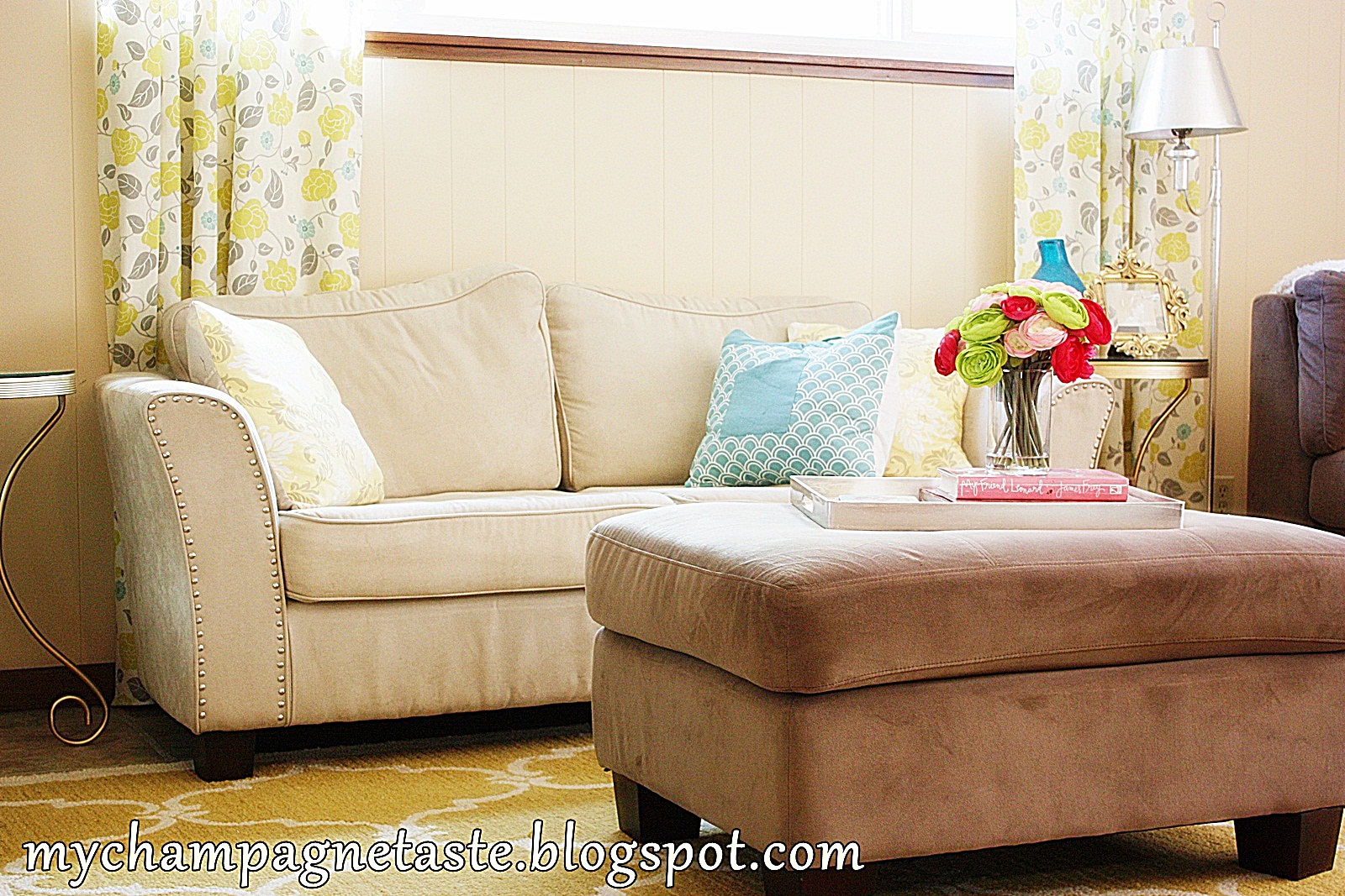 Last year the husband and I went shopping for a sofa. I fell in love with the blue Loveseat at Macy’s called ” Jaqueline Loveseat ” especially the nail head trim but my husband didn’t like it at all, so I had to search for another alternative 🙁