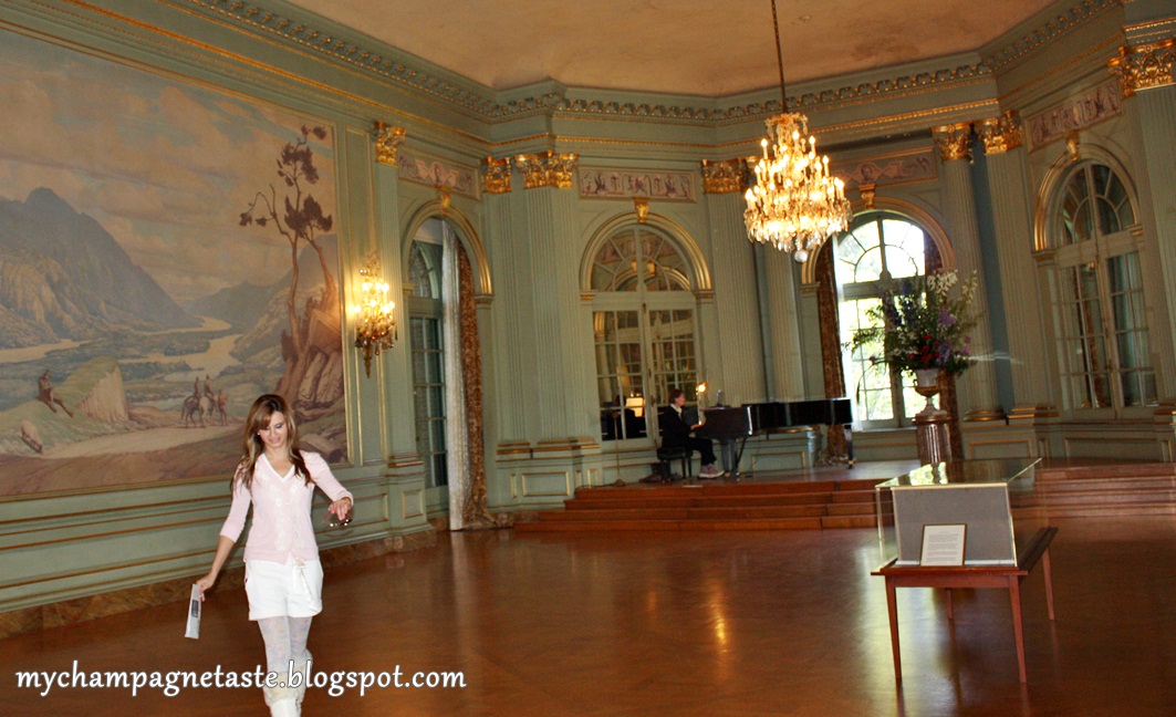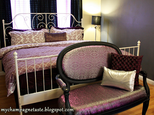 You can see how I transformed an old settee into this glamorous purple settee here. And this small silver pillow was made by moi 😉